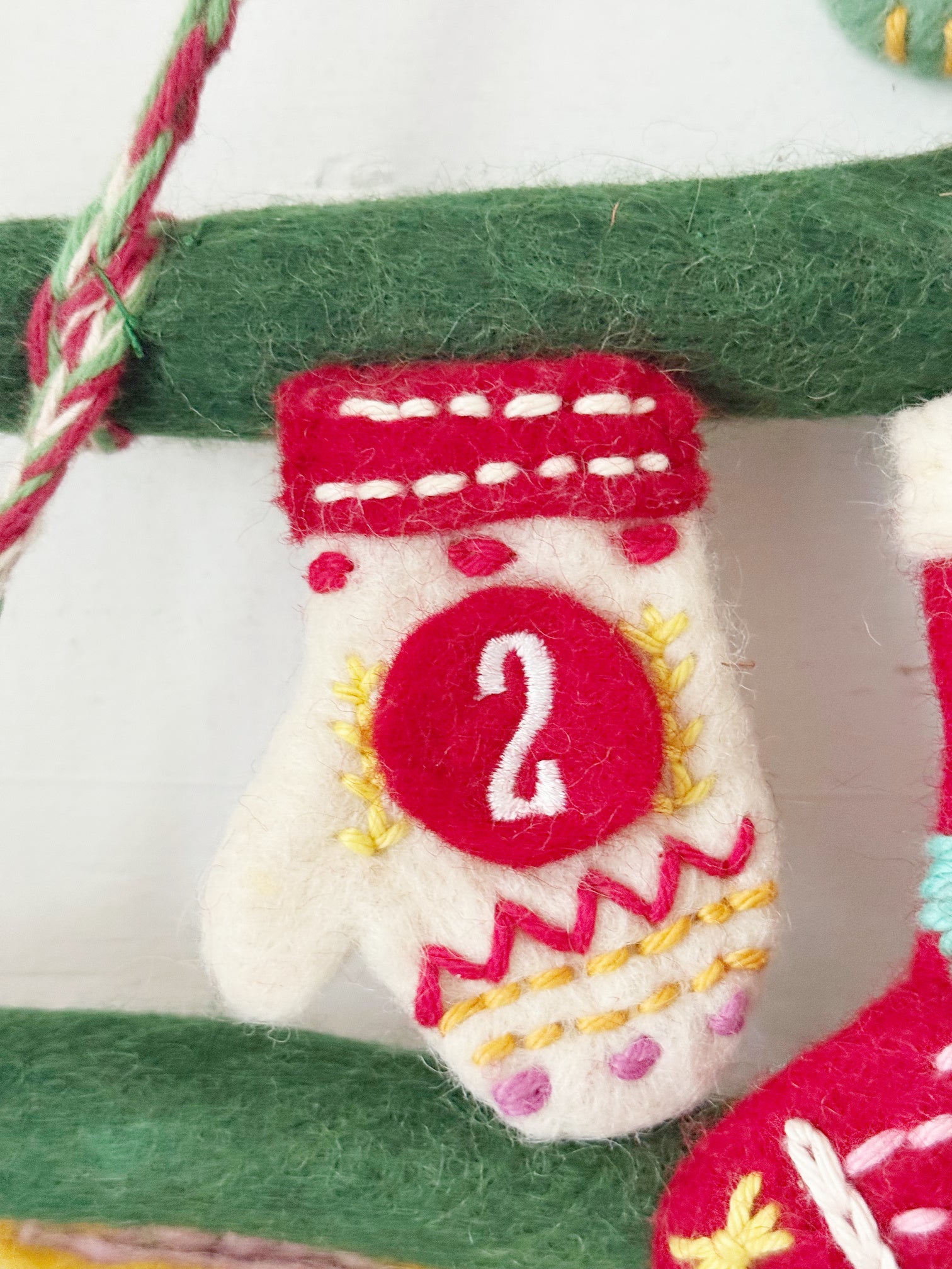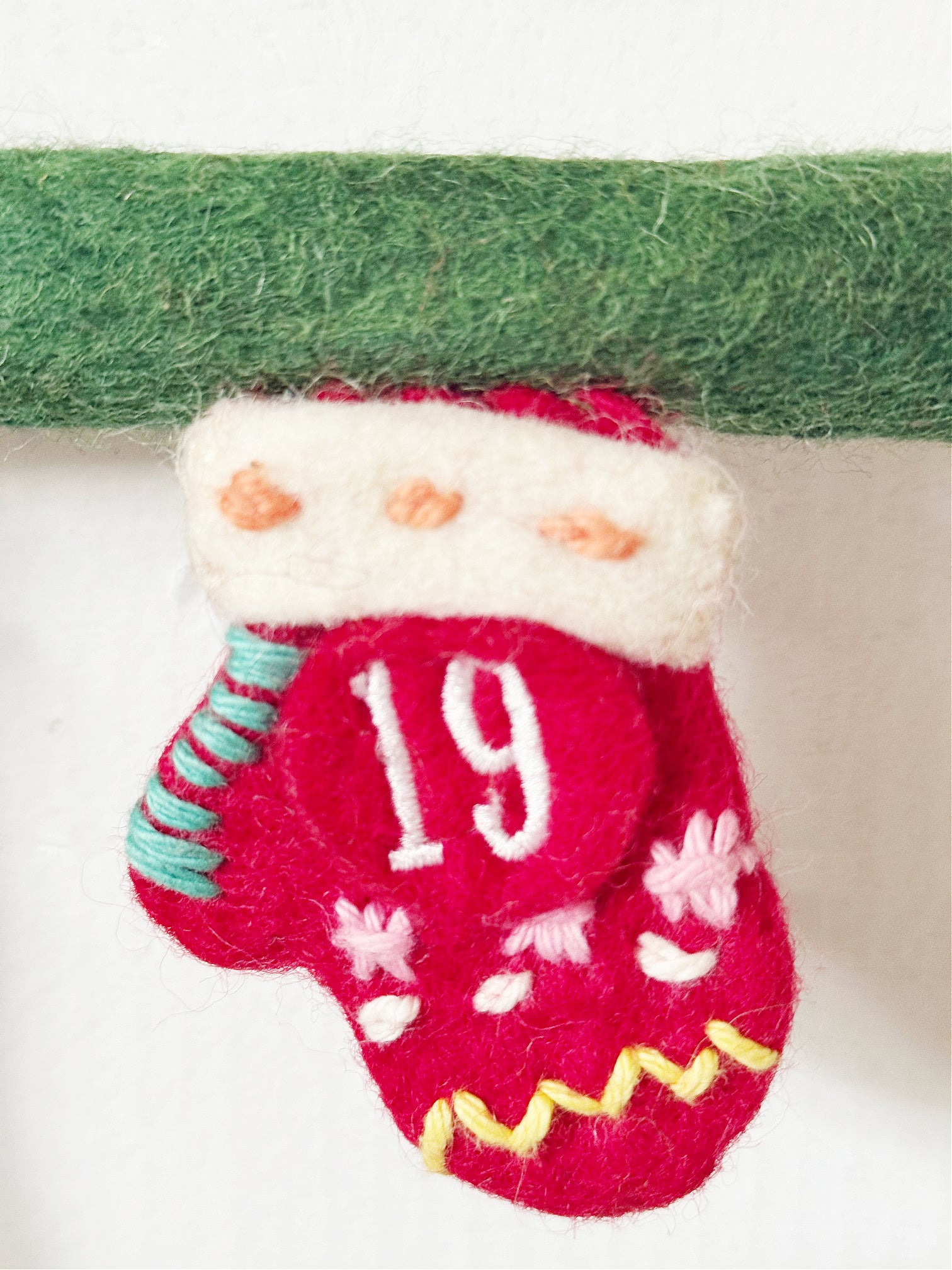 There's a tiny little embroidered pocket for each day leading up to Christmas. Fill the pocket with a tiny note or treat.