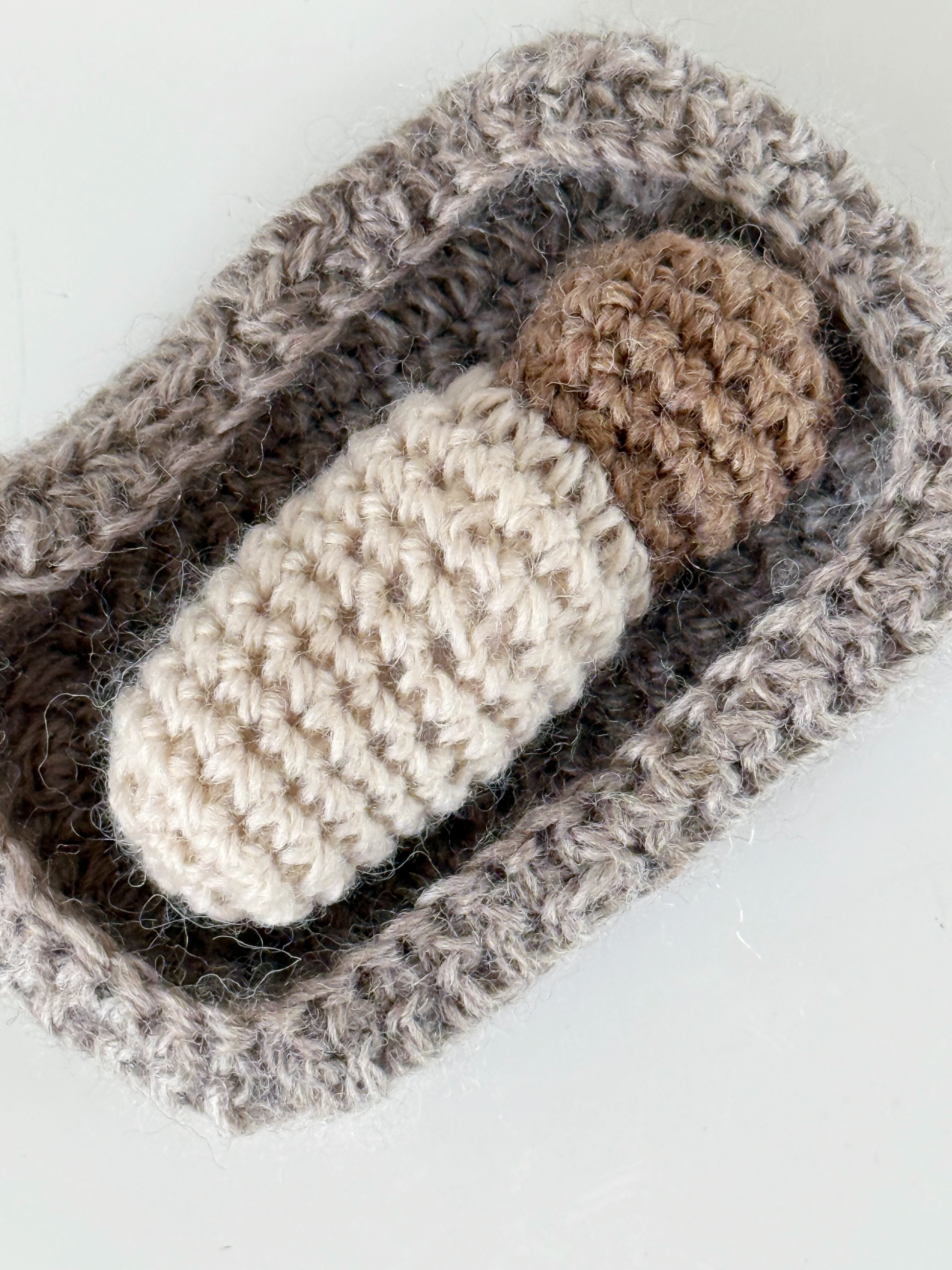 And there, gathered together in soft yarn crochet stitches, is a story older than time itself. Mary and Joseph and the Christ child.
