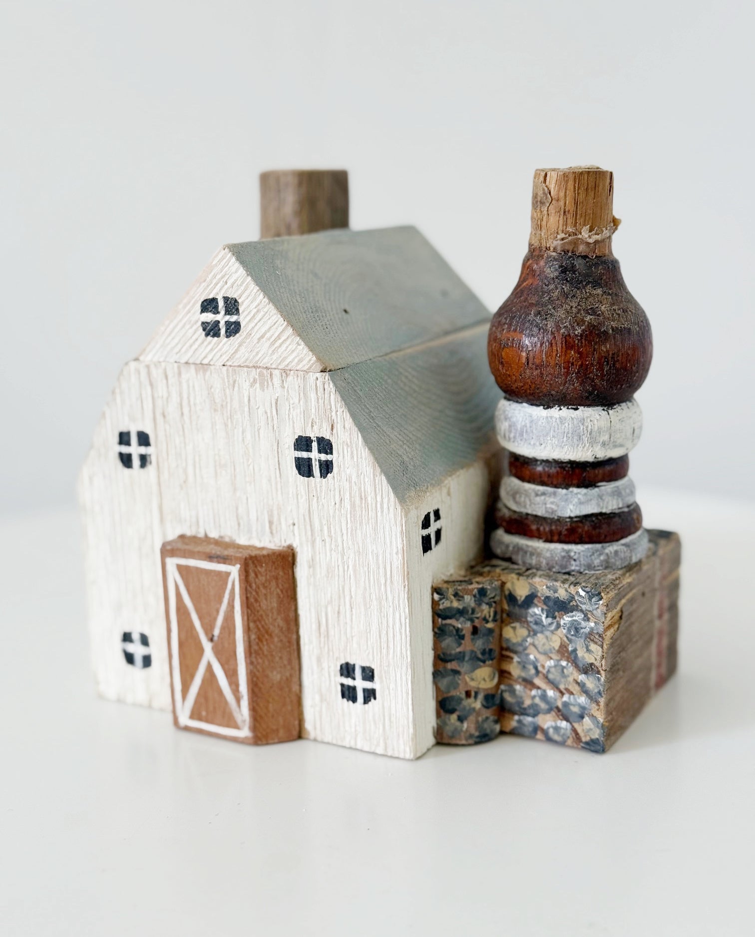 Each piece is handmade by an artist with vintage pieces and distressed wood.